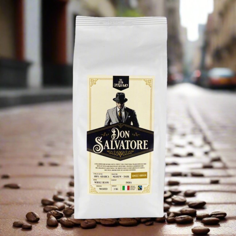 Zažijte autentickou chuť pravého italského espressa s naší prémiovou kávou Don Salvatore. Tato single origin 100% Arabika pochází přímo z Indie, ze zdrojů s certifikací Fairtrade, což zaručuje nejen nejvyšší kvalitu, ale také férové podmínky pro místní farmáře.
