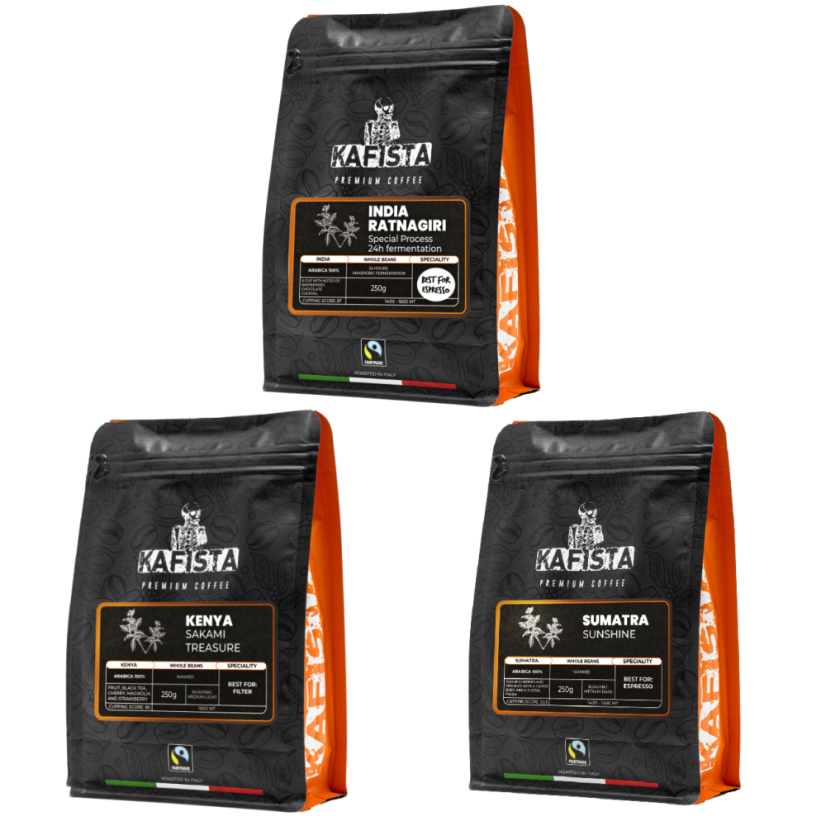 Výběrová káva - Kafista balíček 3x250g - Praženo v Itálii, zrnková káva Fiartrade, SCA